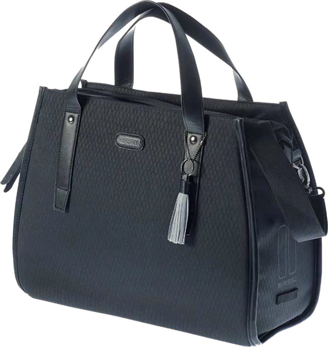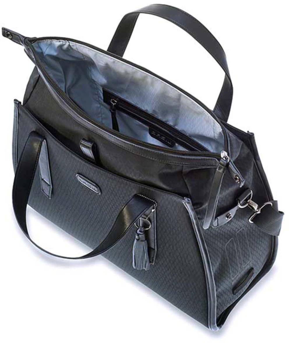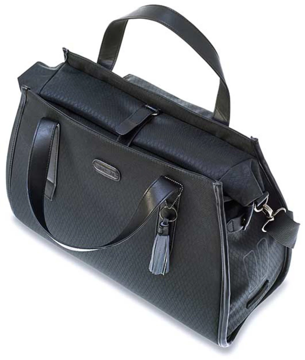 Are you going for an elegant or business look? It doesn’t really matter because the Noir bicycle bag always has a good solution. Thanks to the handles and the removable shoulder strap, you can use the bag as a shoulder bag or as a handbag. You can easily adjust the shoulder strap to the desired length. Then continue your journey by bike? Hook the shoulder bag to your rack. Put the shoulder strap away while cycling to avoid dangerous situations. The bag has a maximum carrying capacity of 5 kg.