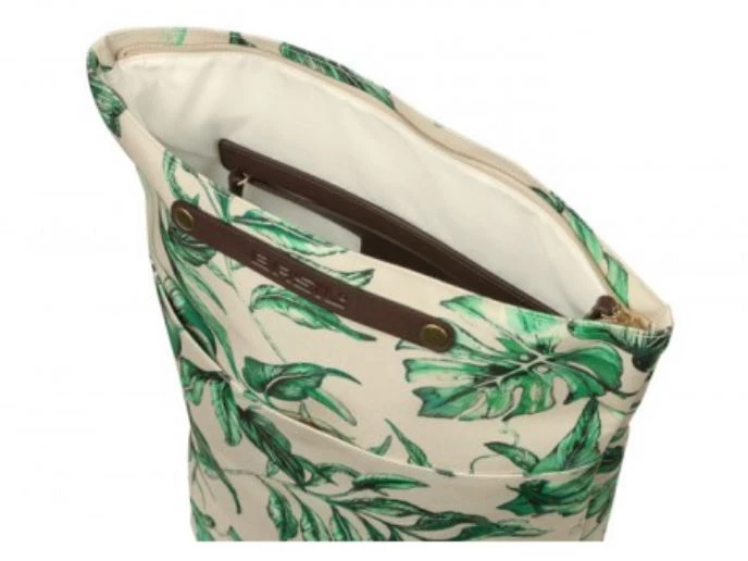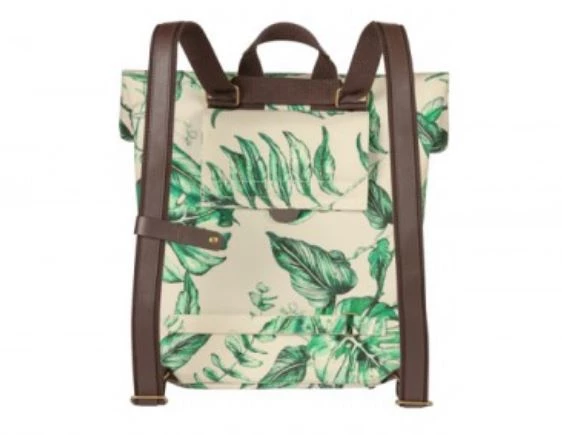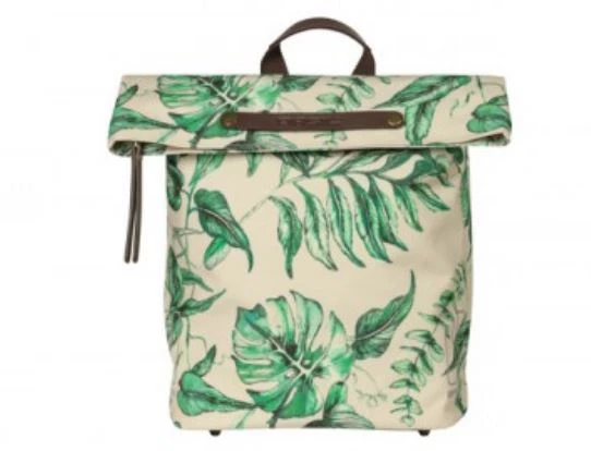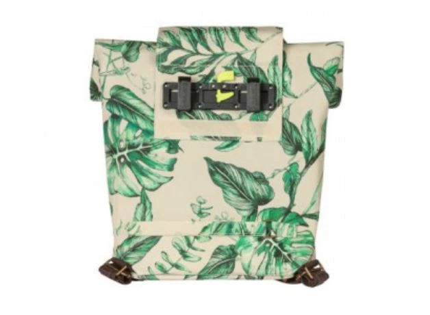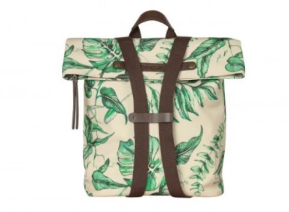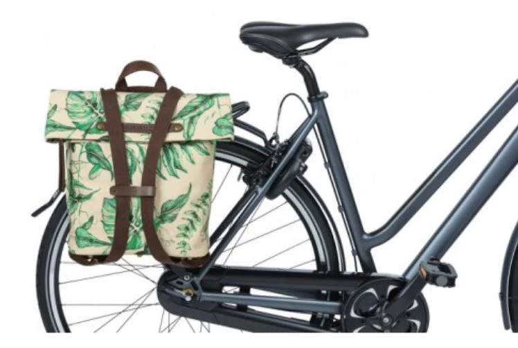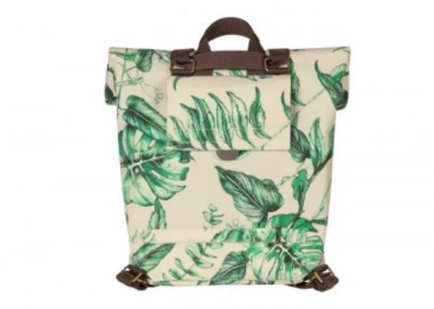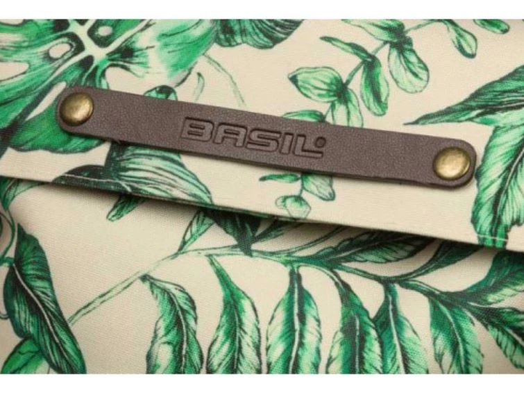 With the Ever-Green bike backpack from Basil you choose a durable and hip model! The trendy green botanical print on the beige bag is hand-painted by talented Dutch illustrator Meggy Lemmens. And did you know that the bag is made of 40% recycled PET plastic? In addition, the bag has brown vegan leather details and antique bronze trim. This 14 to 19 liter bike bag is super quick to attach thanks to the Hook-On system. Dimensions of the bag are 16 x 28 x 35 centimeters (dxwxh). Suitable for various racks on electric bikes, and city bikes.