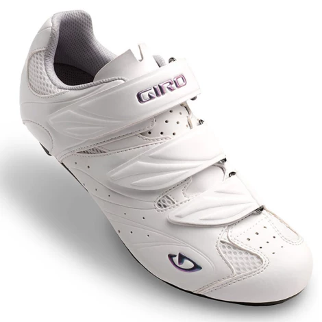 The Giro Solara II women’s shoe is a great option if you’re looking for your first proper road cycling shoe which works in unison with a clipless pedal system. These road cycling shoes are simple, stylish and functional, benefitting from some of the same construction techniques taken from higher up in the Giro cycling shoe range; with a simple but effective three strap Velcro closure these women’s road shoes are quick to get on and off while a welded and bonded microfibre upper means there are less pressure points and they’re easy to clean. Giro have matched a supportive EVA footbed featuring an Aegis® anti-microbial treatment with a super-stiff DuPont® Zytel™ nylon outsole to create an efficient, powerful platform to help you transfer all of your energy to the pedals. The Giro Solara II women’s cycling shoe is a great choice for recreational riders who are starting to become more serious about their cycling.