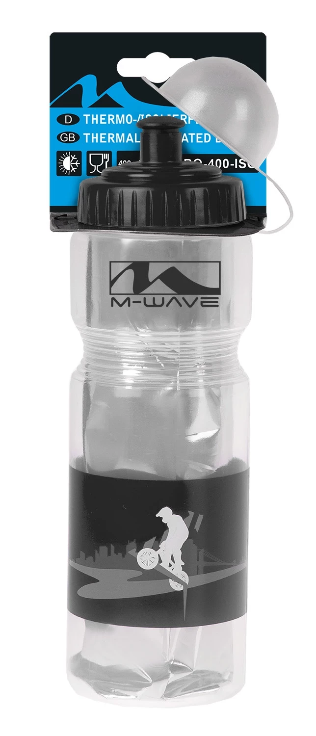 thermo bottle, M-WAVE, plastic, transparent/red, 400 ml capacity, headercard