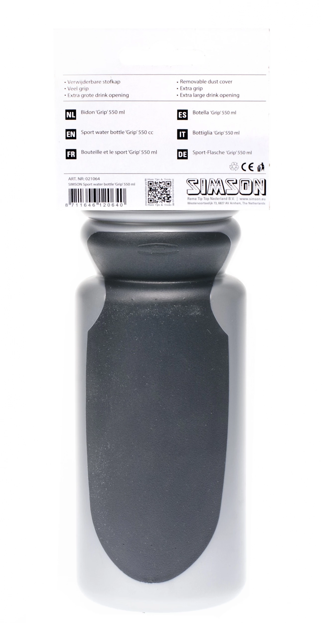 The Simson Bidon Grip is useful when cycling or sports. The bottle has an ergonomic design with rubber grip. This gives a very good grip and optimal comfort to the hands. The cap and the lockable pullout make the bottle waterproof. With the extra large big mouth opening you can quickly and easily bring your fluid balance back up to standard